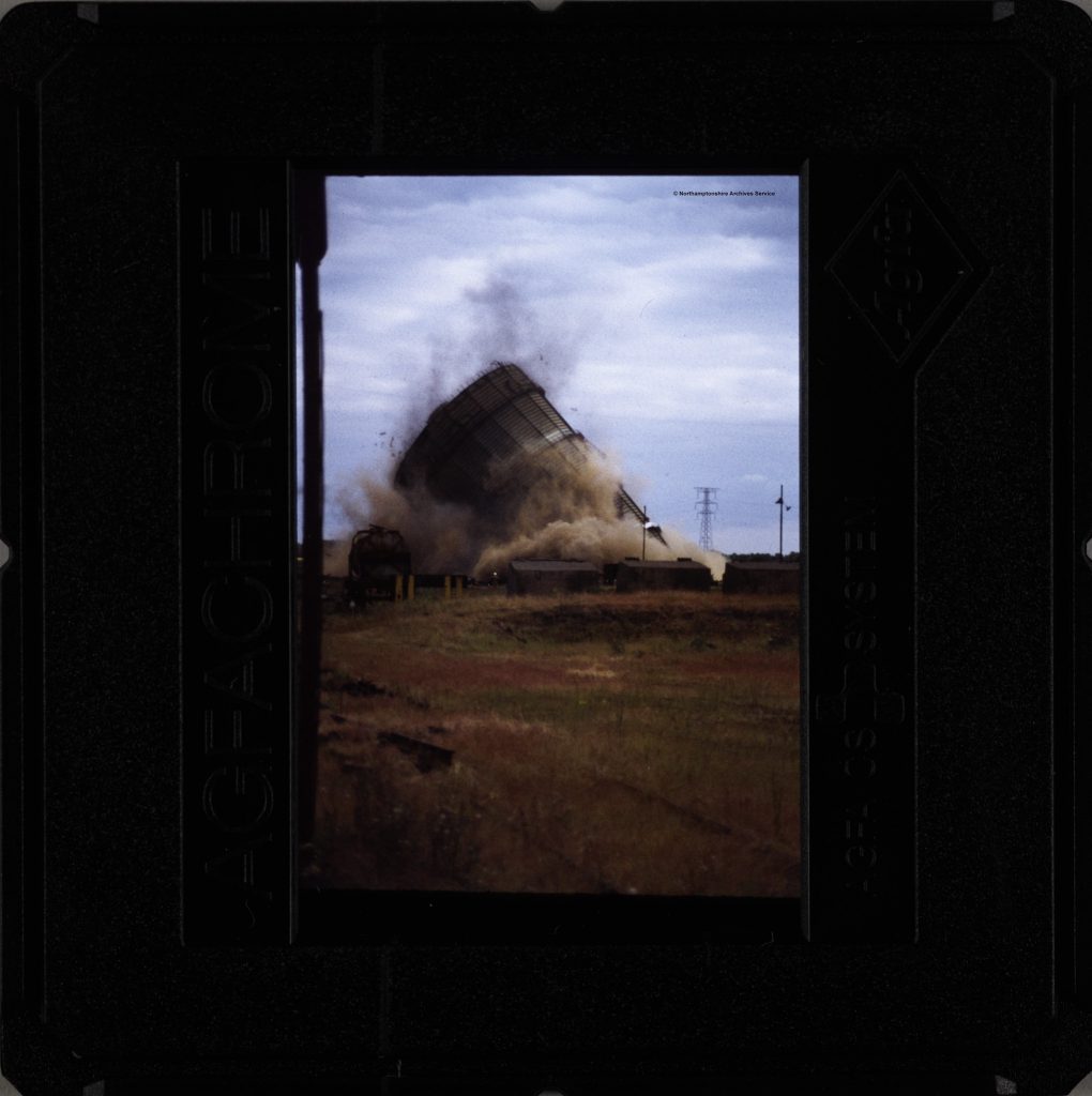 This is, without doubt, the demolition of the Blast Furnace Gasholder in 1981. The evidence of the white writing on the top part falling down is the clincher!