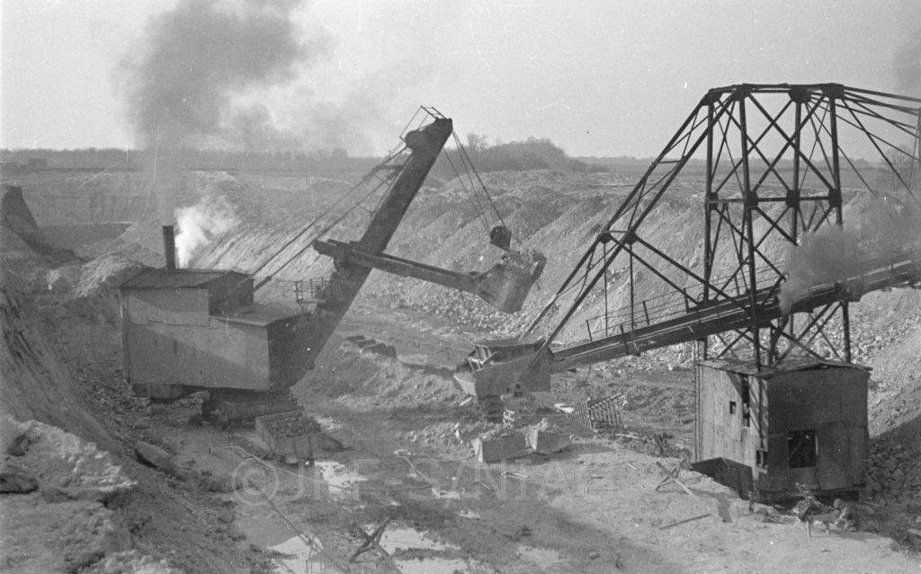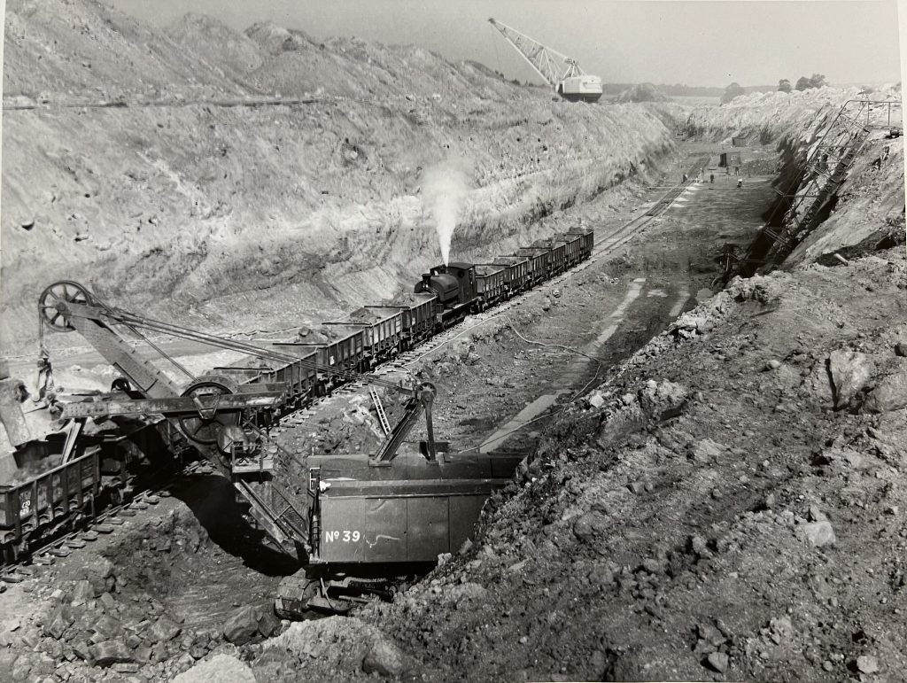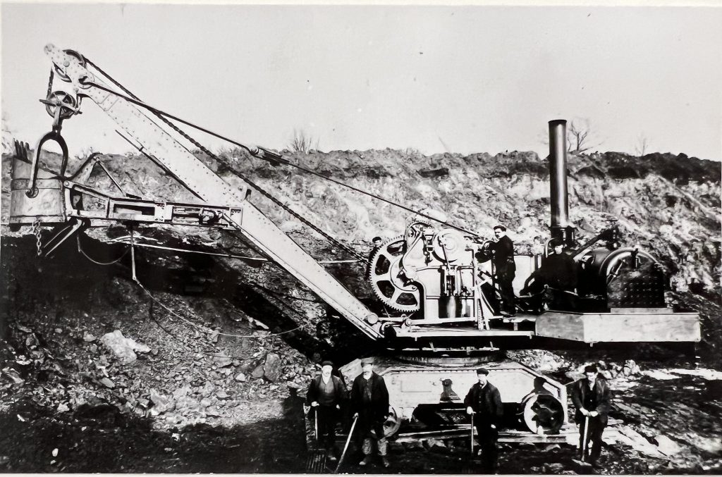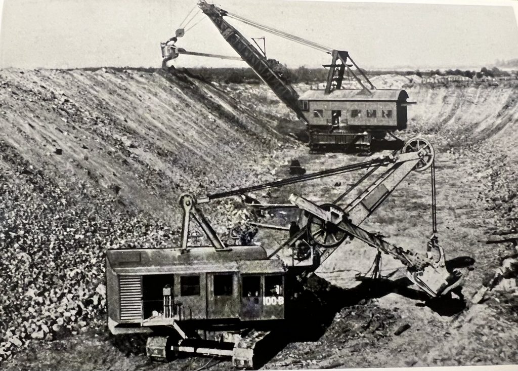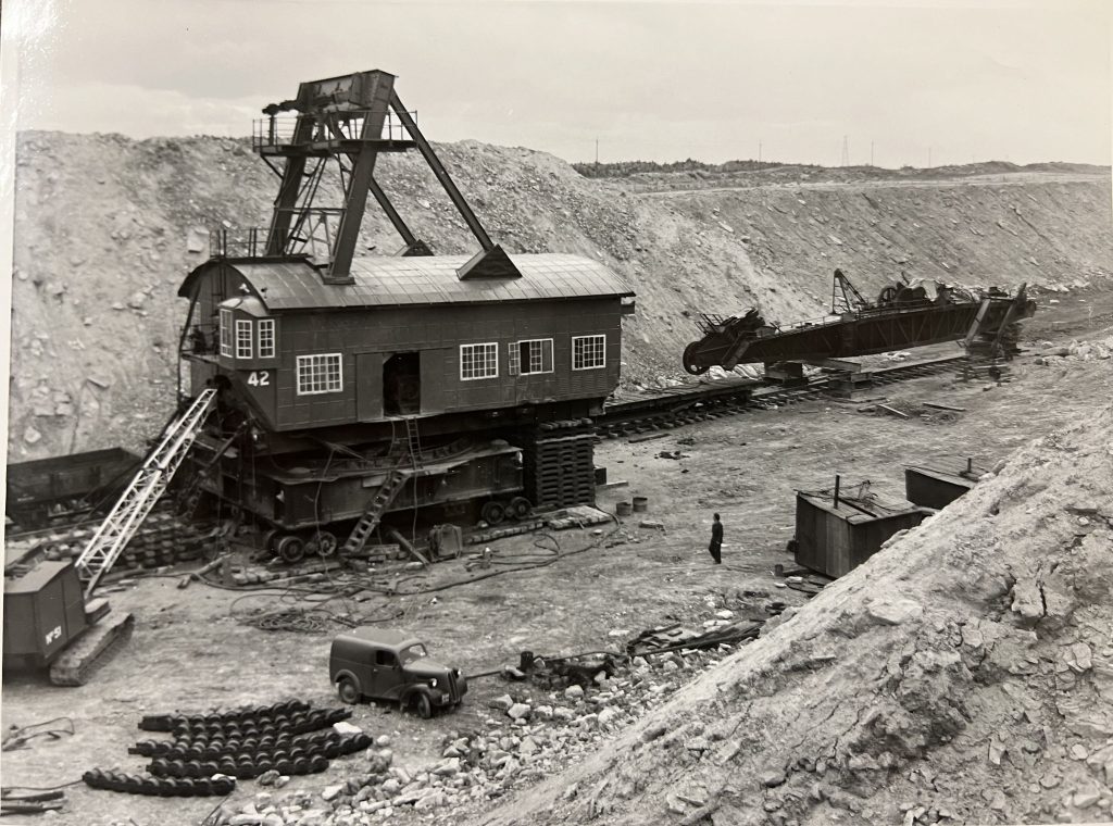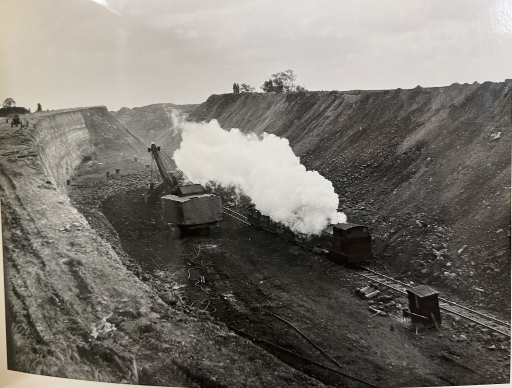 Steam shovel and conveyor moving the overburden in Lowick Pit. Photo courtesy of NIAG.