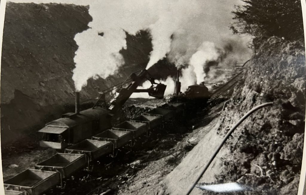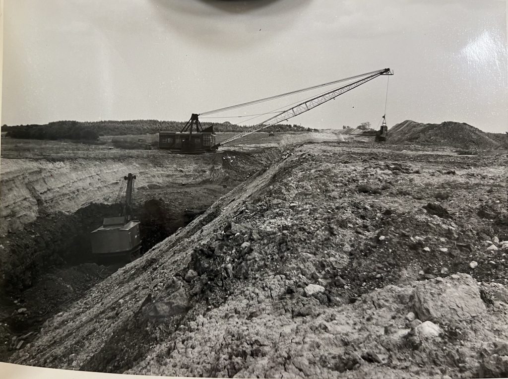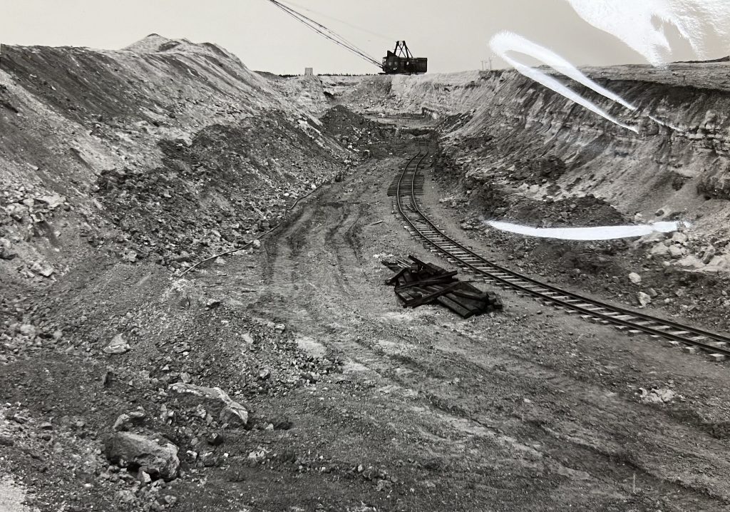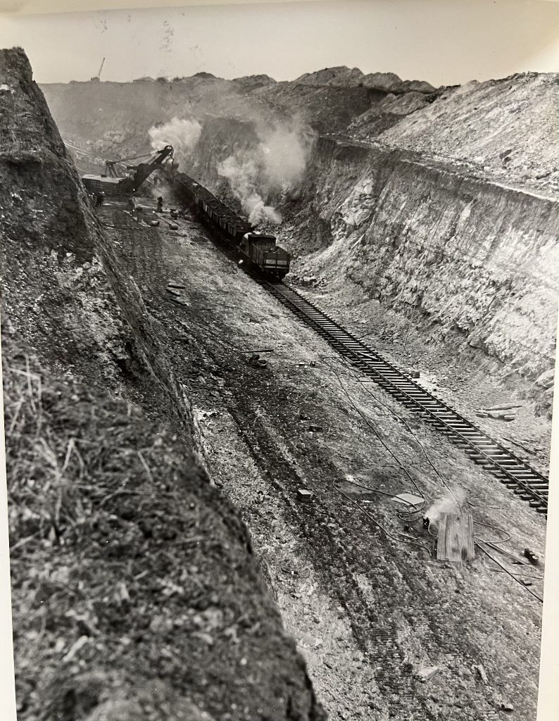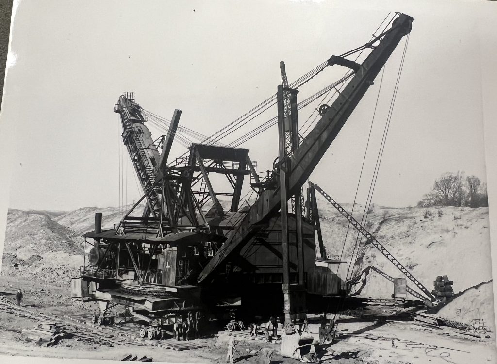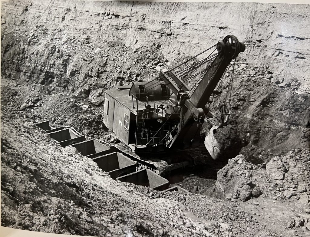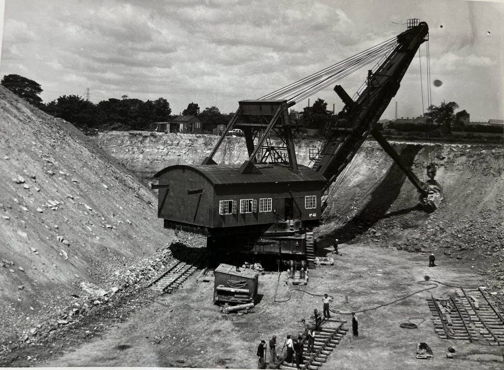 Steam shovel and conveyor moving the overburden in Lowick Pit. Photo courtesy of NIAG.