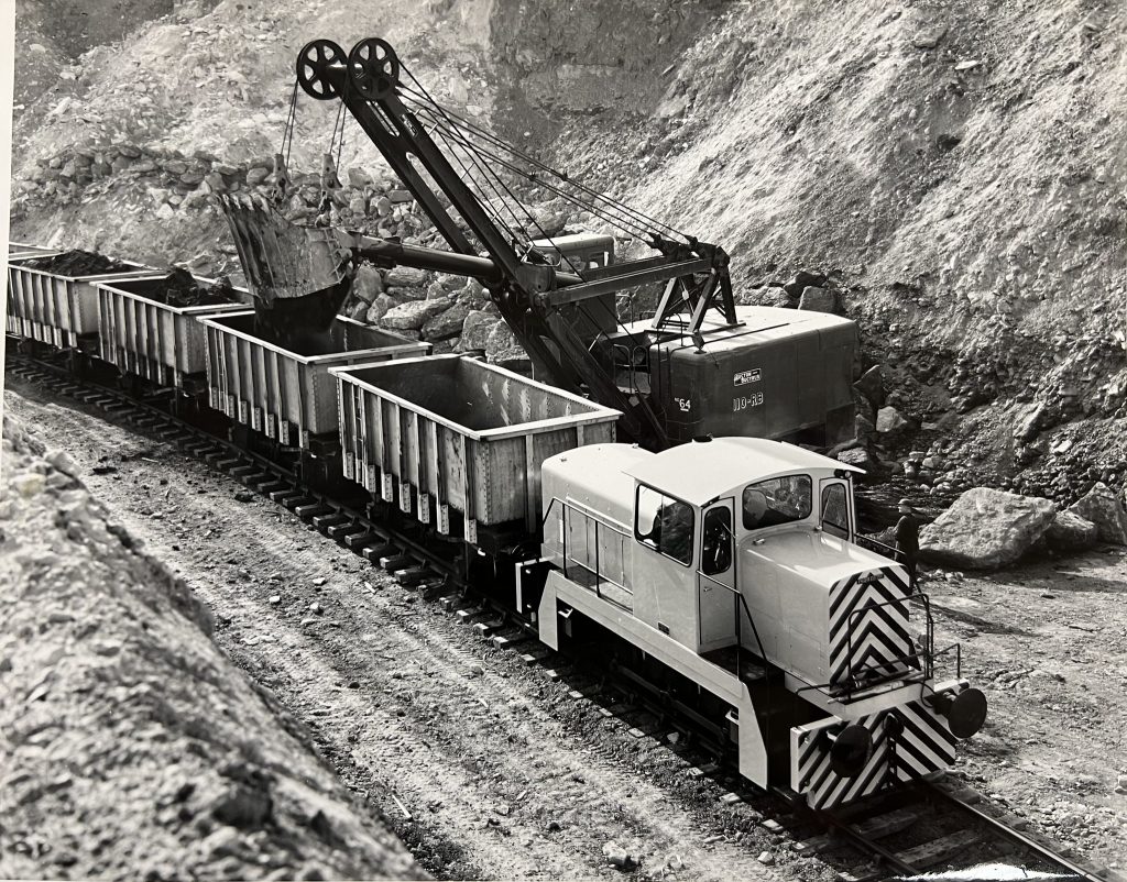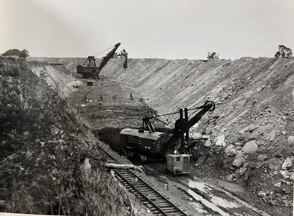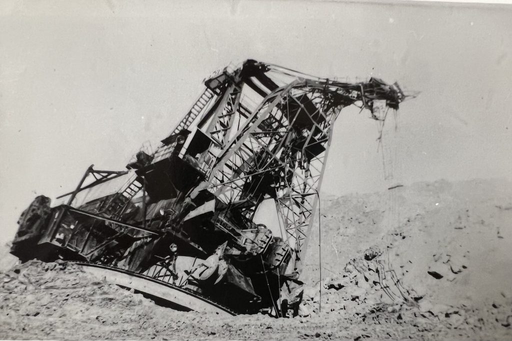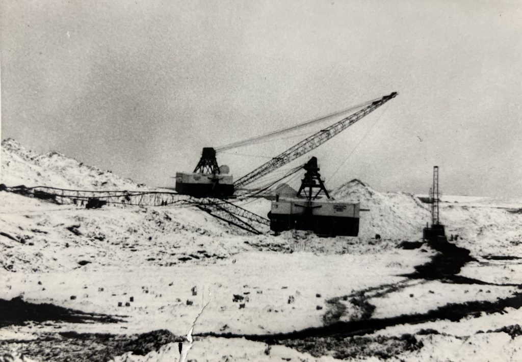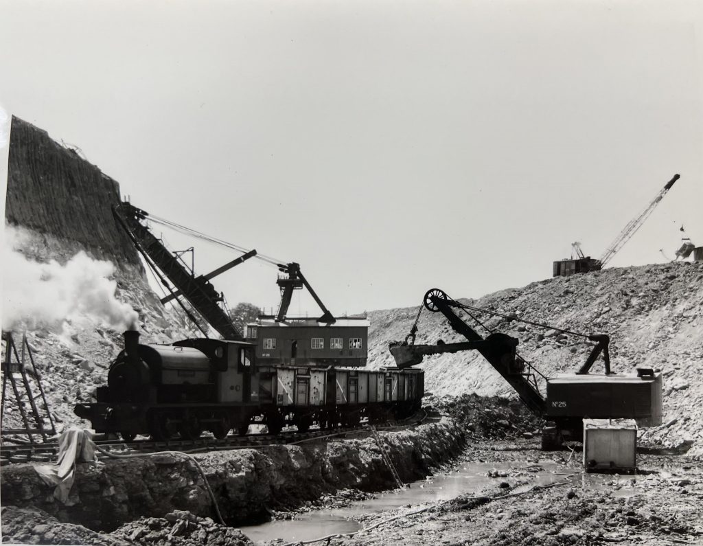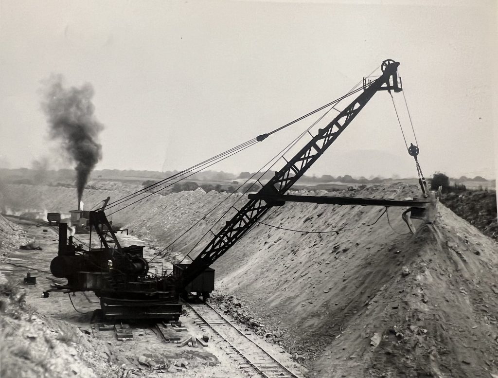 Steam shovel and conveyor moving the overburden in Lowick Pit. Photo courtesy of NIAG.