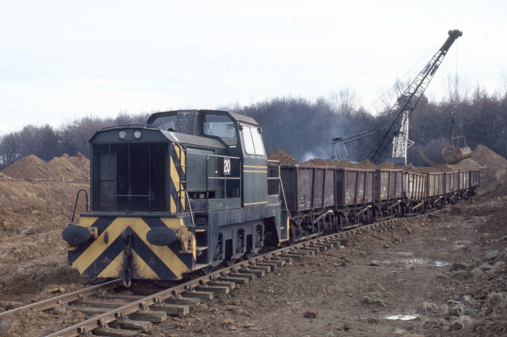 A Rolls Royce Shrewsbury built standard gauge 6-wheel diesel-hydraulic Steelman loco, No 20 built in 1968, was spotted in the Glendon pit in 1979. Photo courtesy of NIAG