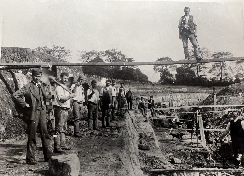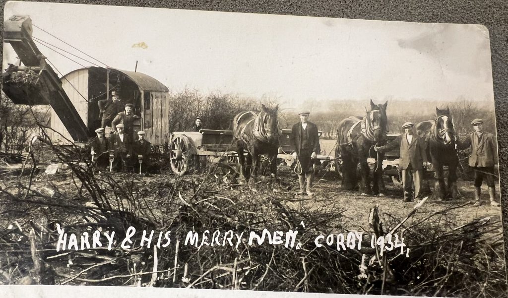 A scan by Northants archives , showing a rake of wooden tubs and 2 early steam shovels .
