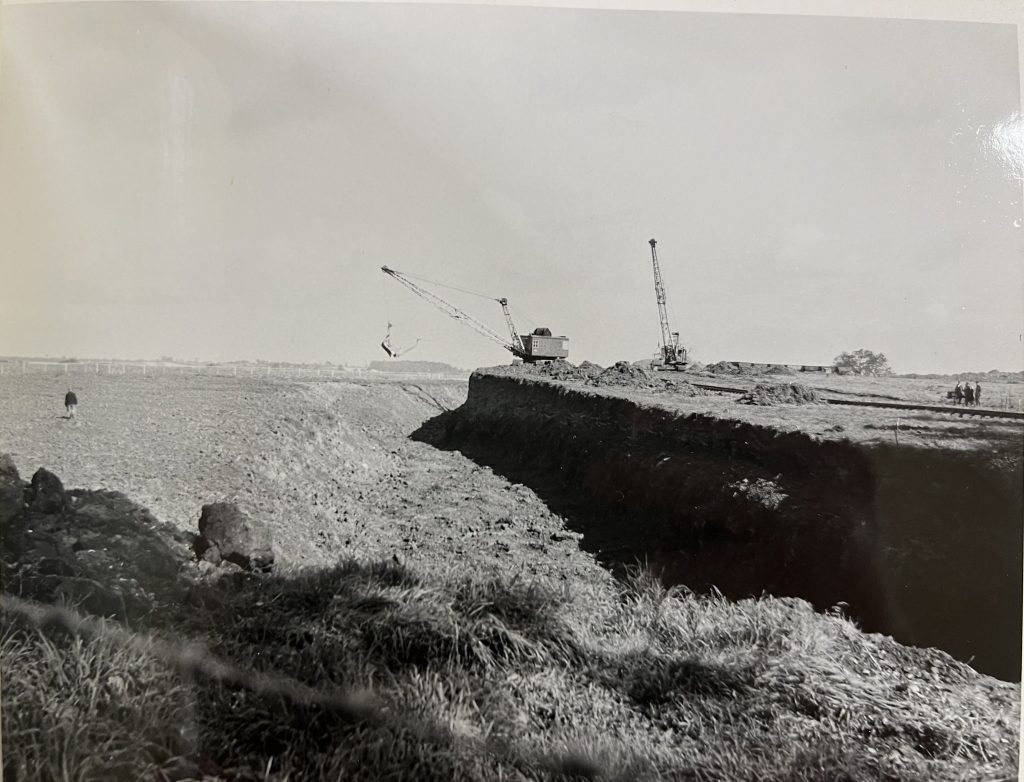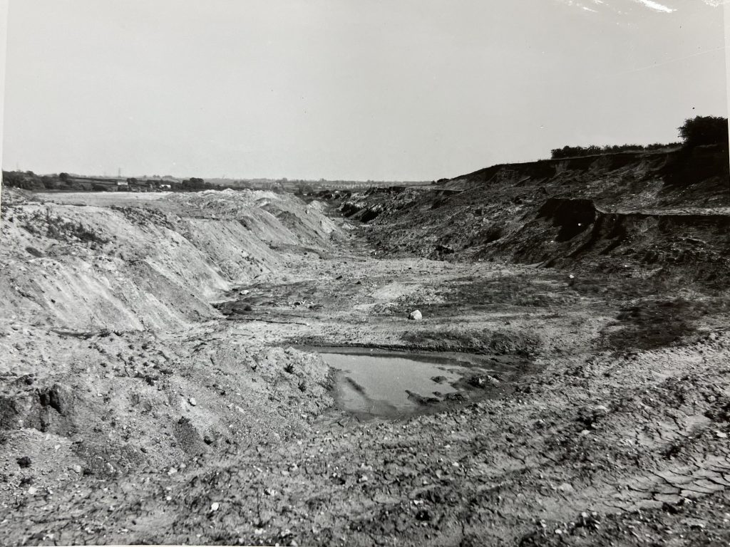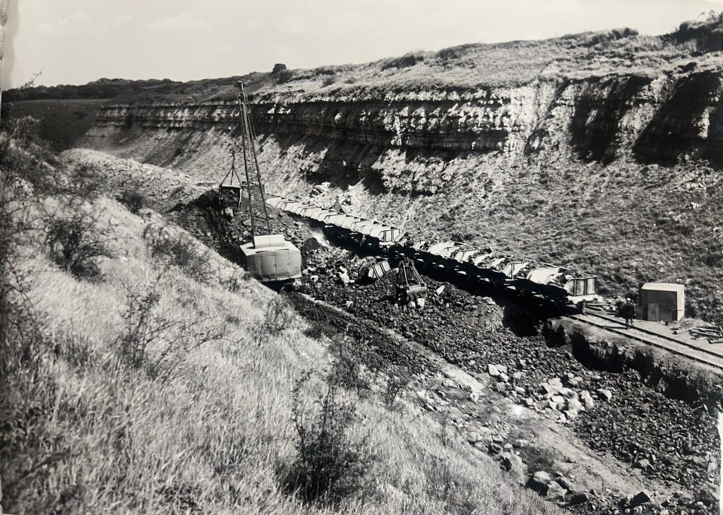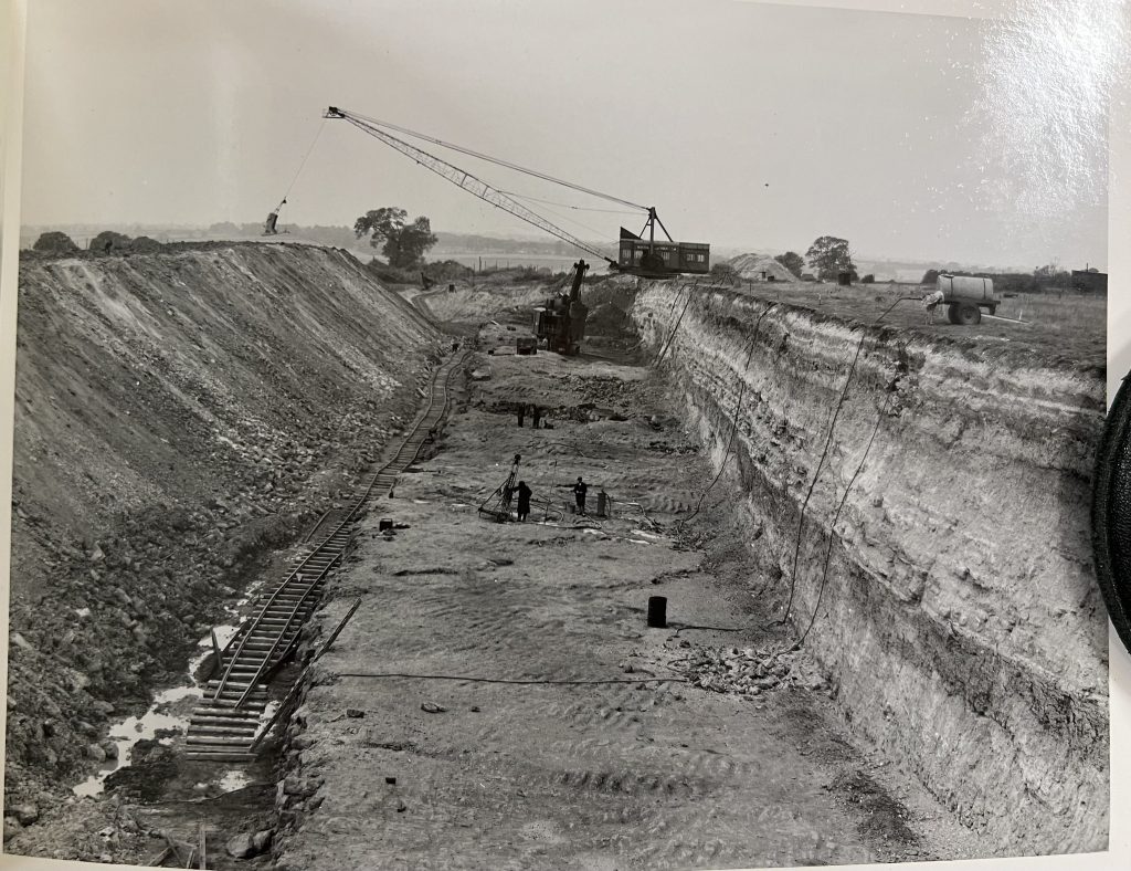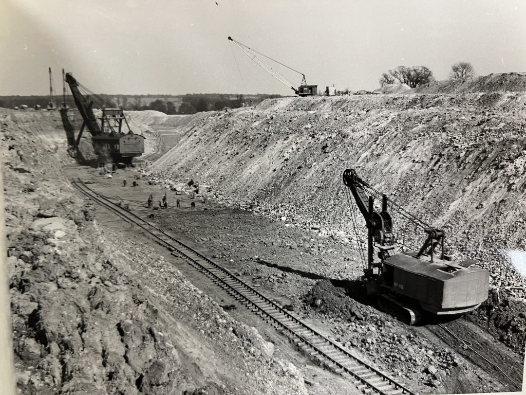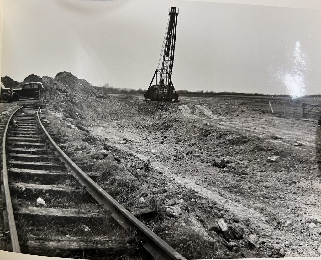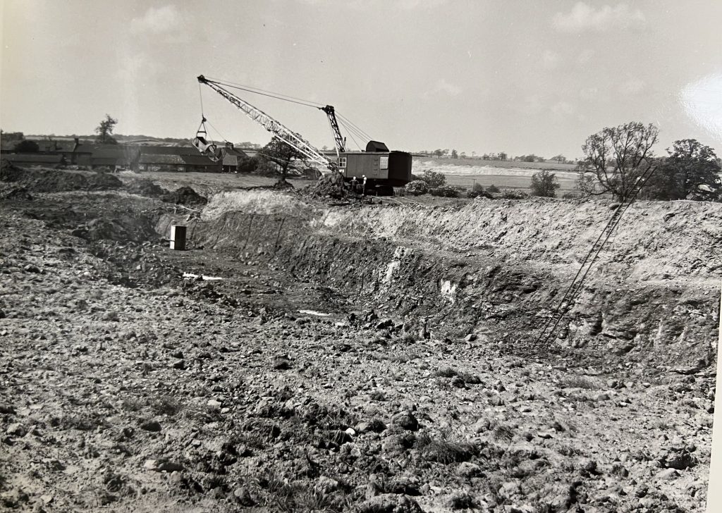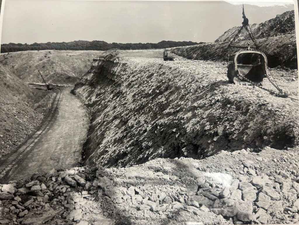 The length of workings is very clear in the above image . The depth of the over burden can also be realised, by using the stripping shovel for scale. 31st July 1956, Northants archives .