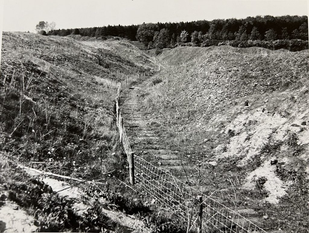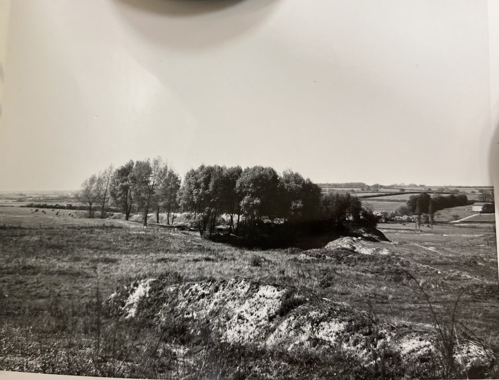Small island of virgin ground ” planted with conifer trees” taken from hells pit . taken 29th may 1954. Northants archives.