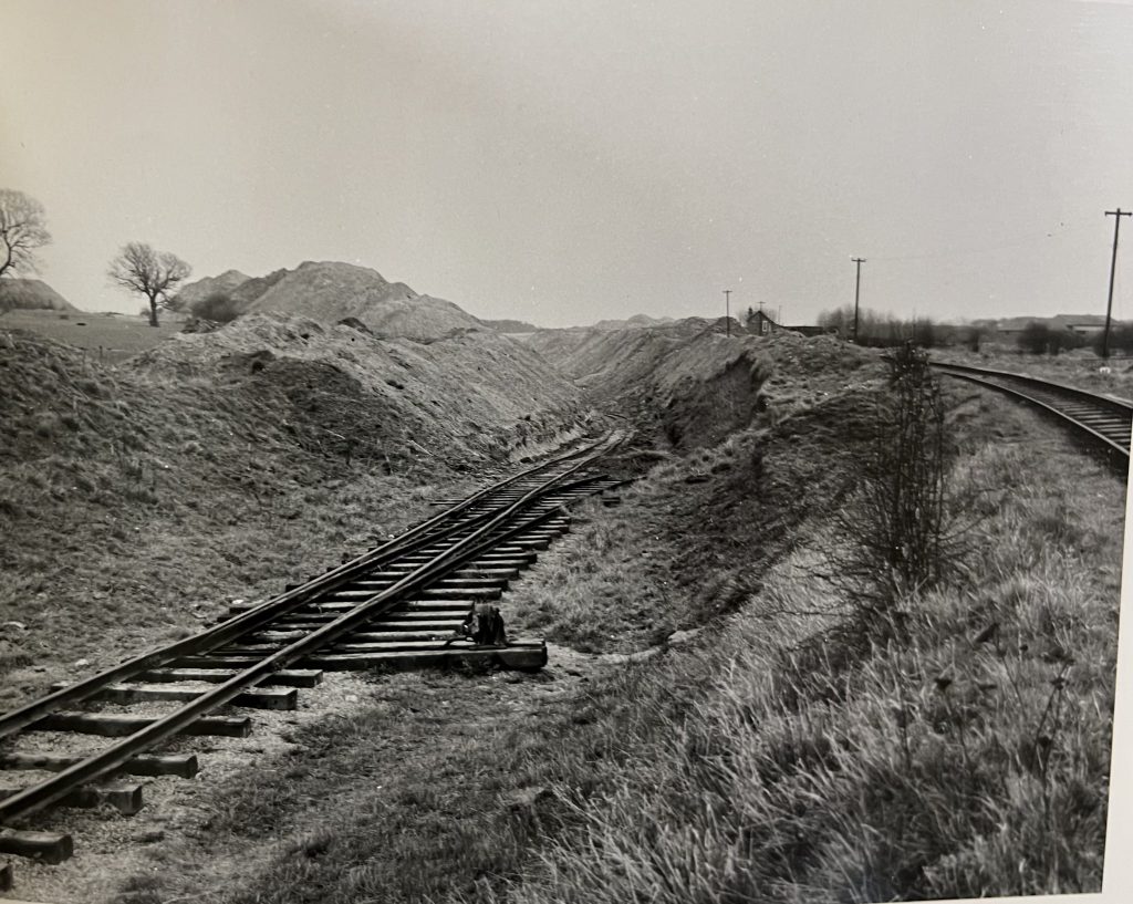 View of old railway cutting running from pit . Taken 27th may 1954. Northants archives .